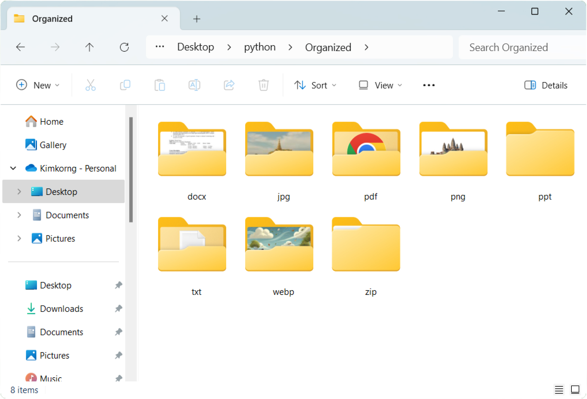 A Python script that cleans up your folders. It automatically moves files into different folders based on their file extension. Great for sorting downloads quickly.